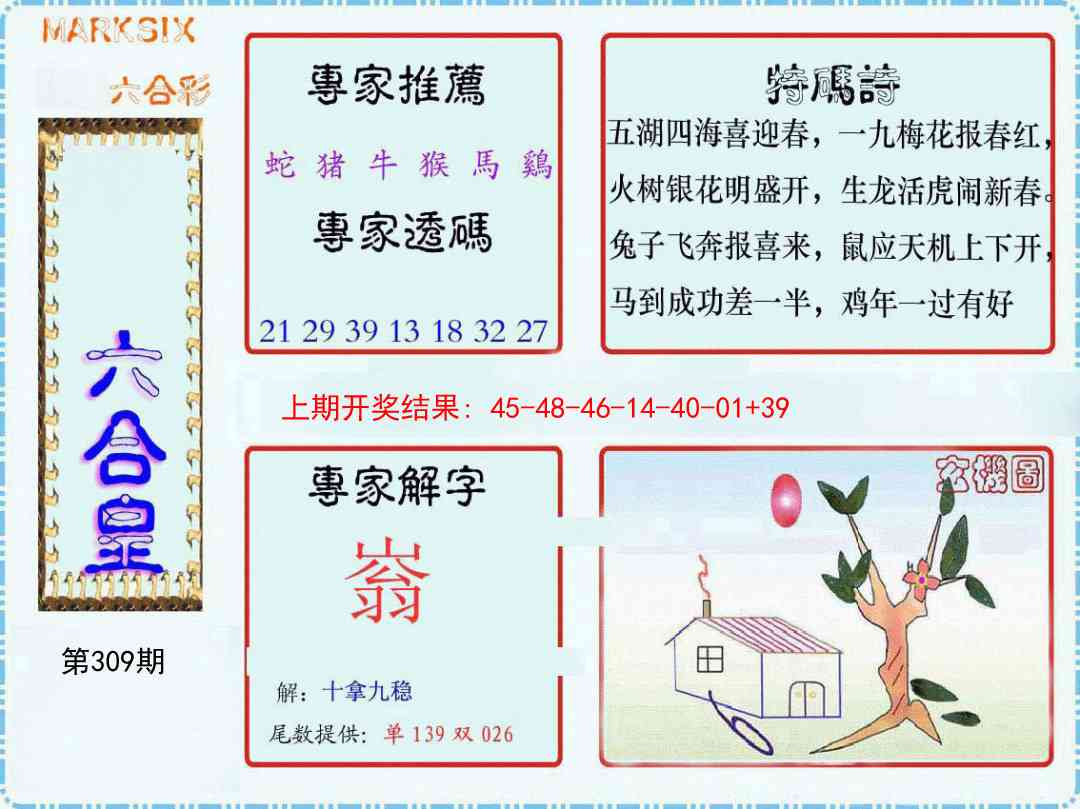 309期: 澳门六合彩彩圖信封【特码玄机】每期自动更新