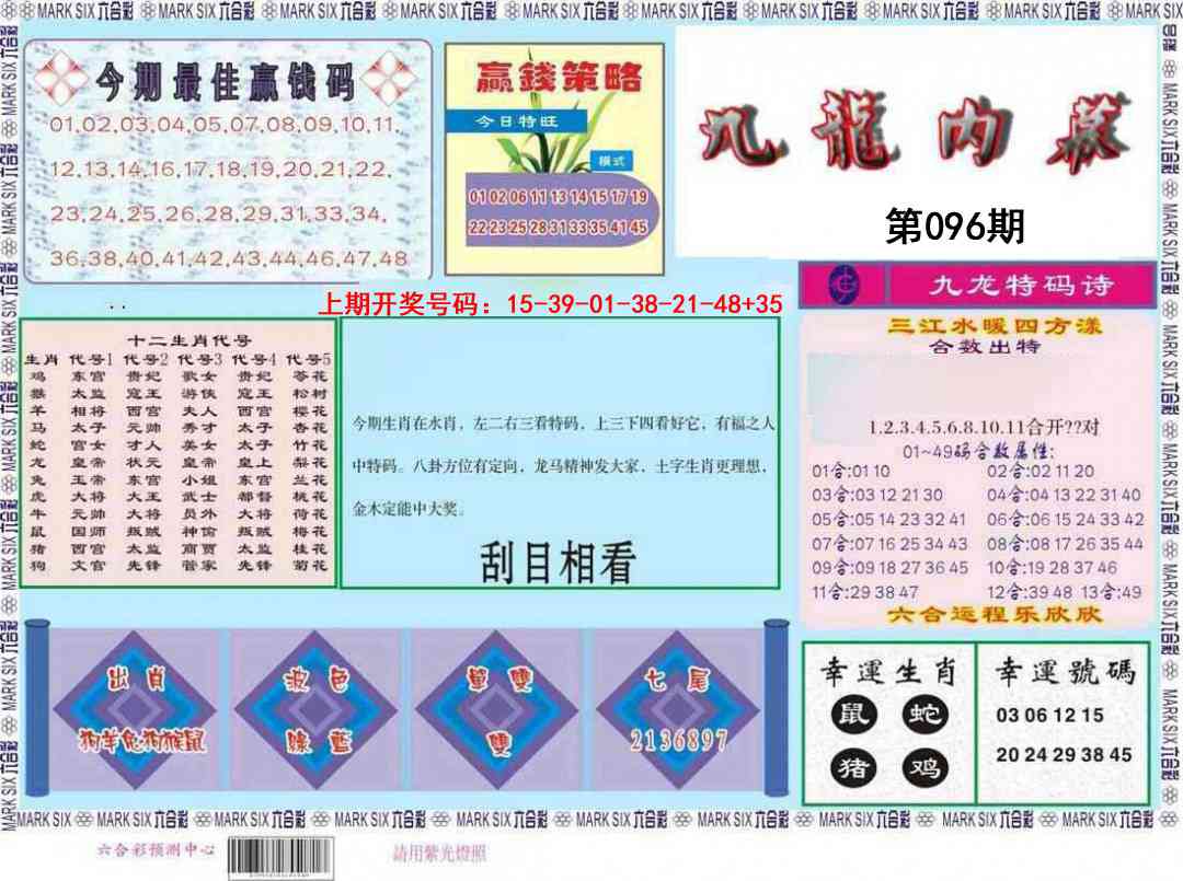 096期: 澳门六合彩彩圖信封【九龙内幕】每期自动更新